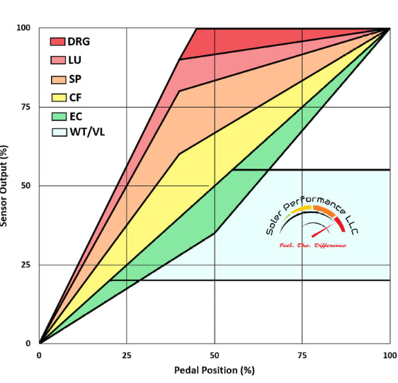 Controls pedal sensitivity, allowing the driver to adjust an otherwise widely considered non-linear (slow/spongy) pedal response/map.